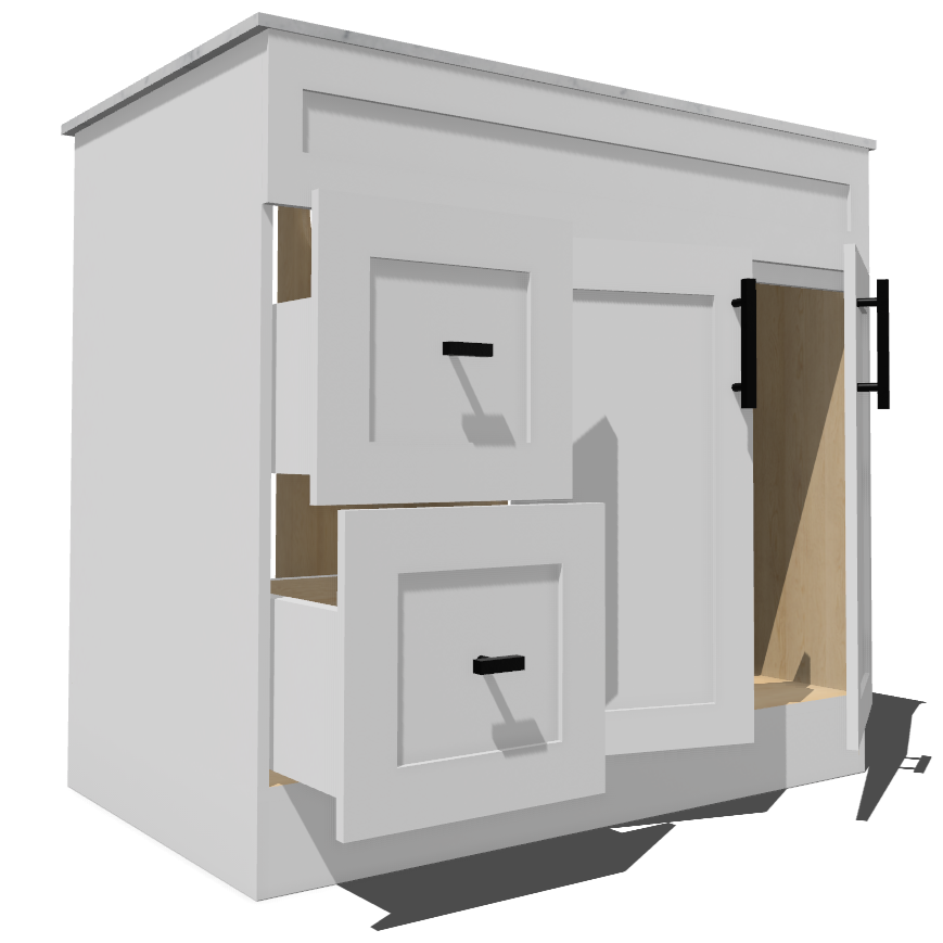- 36" Shaker silhouette with left or right drawer orientation (mirrors top retailer titling).