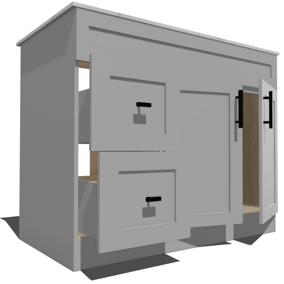 - 42" Shaker vanity with left or right drawers