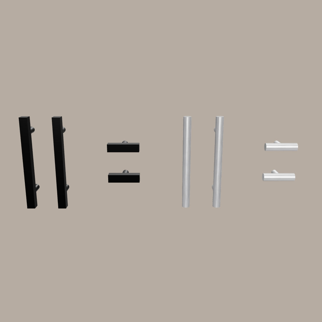- Hardware: Square or Round pulls; Brushed Nickel or Matte Black