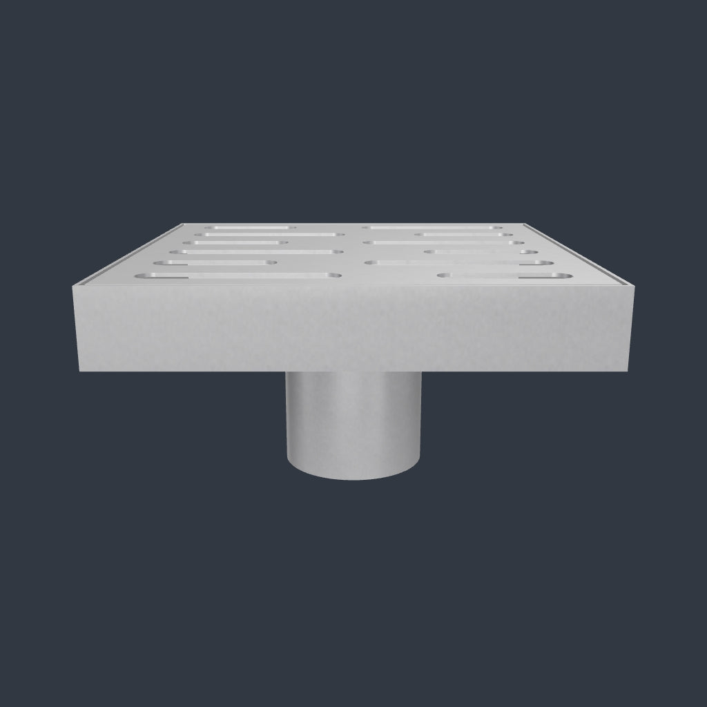 - Square footprint (6″ × 6″) suits centred drains and compact showers.