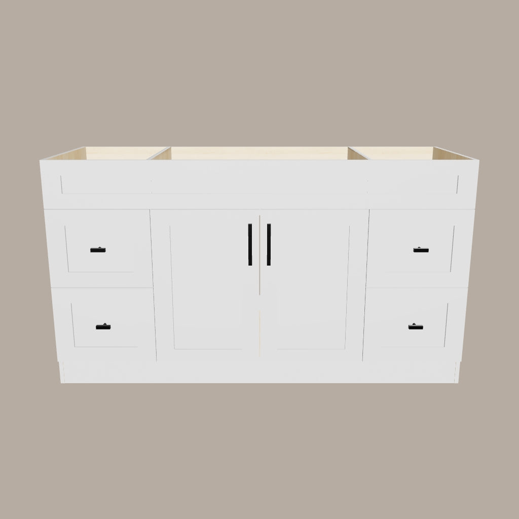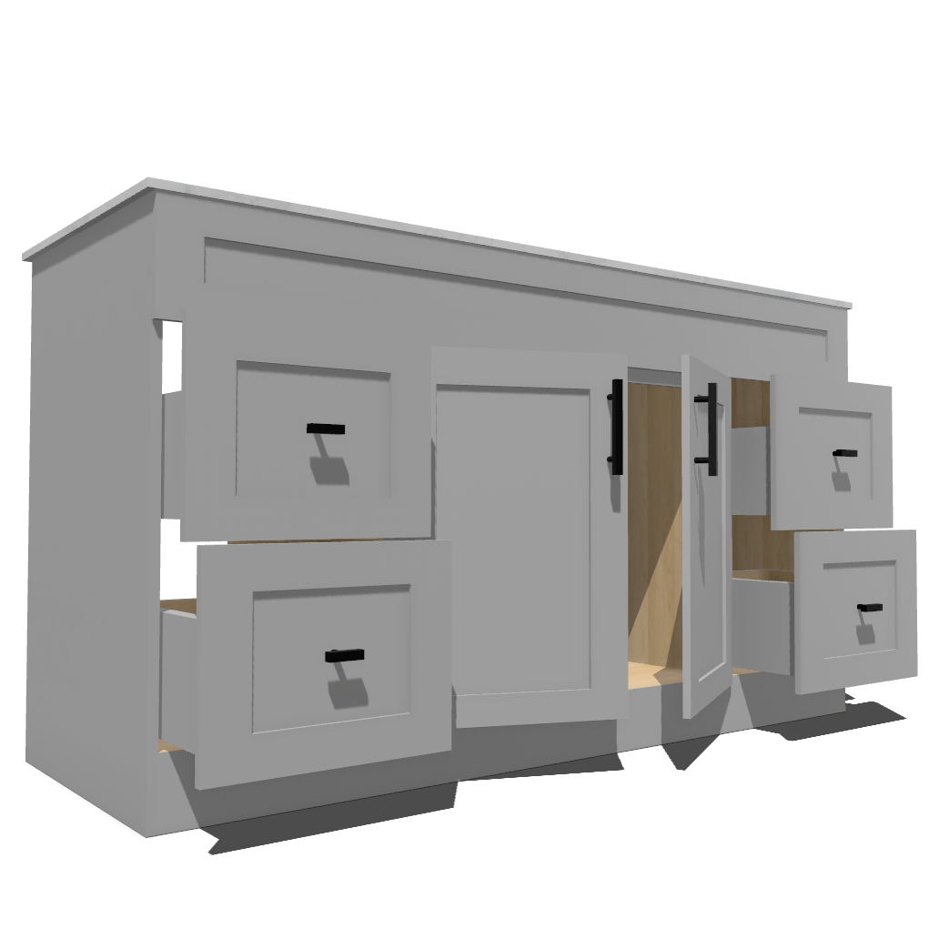 - 60" Shaker silhouette with 4 drawers + center double doors
