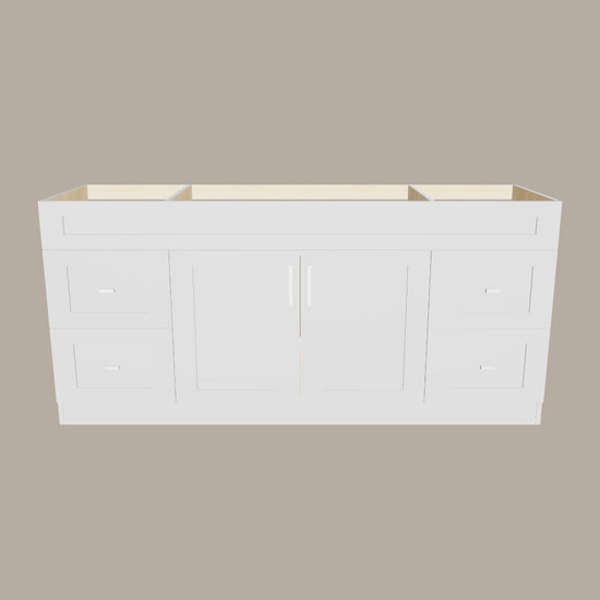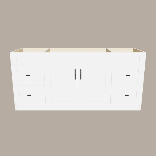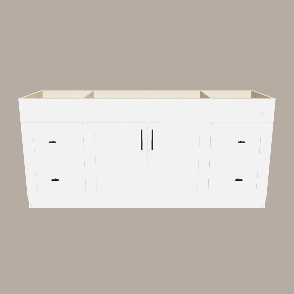 - 72" Shaker, single-sink layout; two drawers per side + center double doors